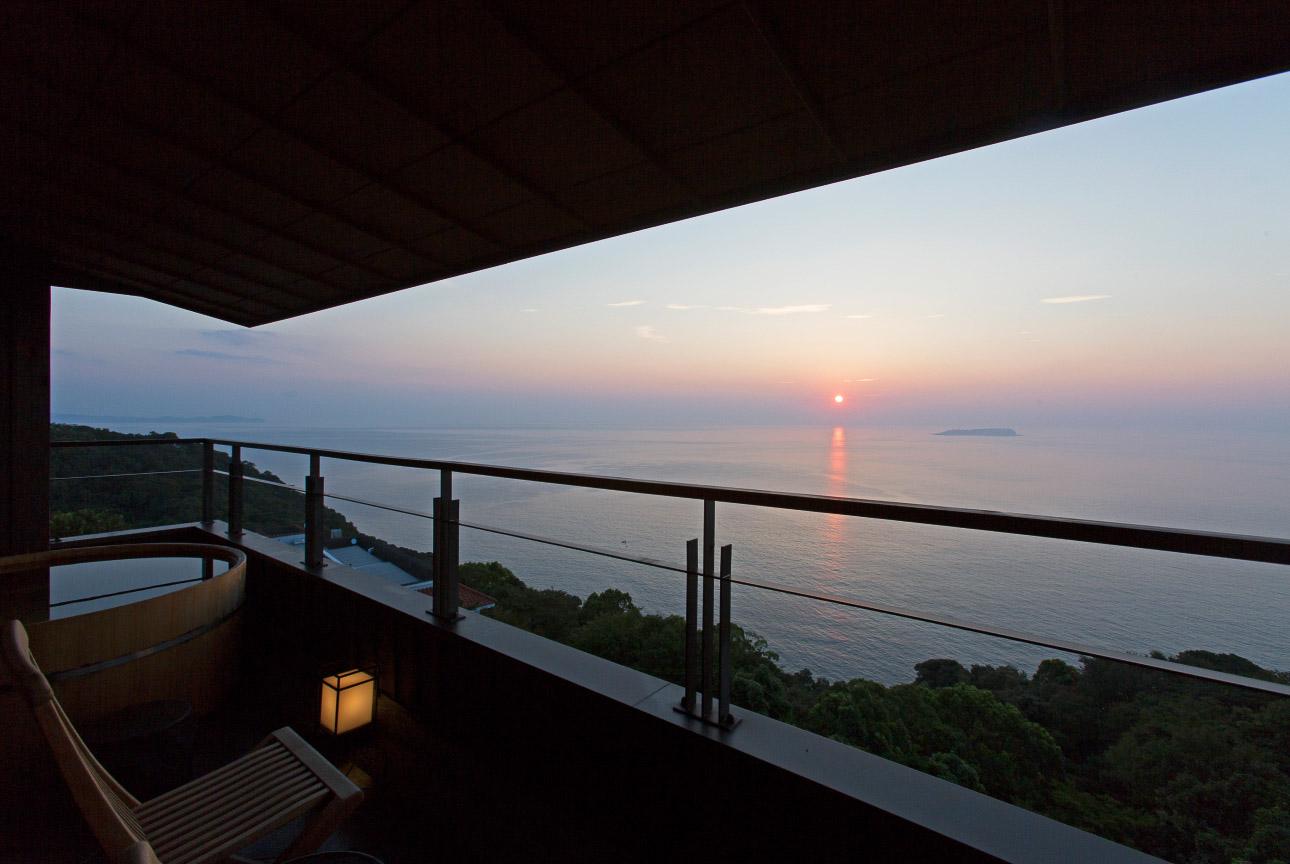 細部に至るまで、とことん和にこだわって作り上げた純和風モダンのお部屋です。 奥行きのある縁側のような空間が、風情ある眺めをより魅力的に演出します。 開放感たっぷりの露天風呂で、日常を忘れ贅沢な気分を味わうことができます。 お食事は、お部屋お隣にある専用のお食事処にてお楽しみいただけます。 特別室【蒼】特別室【海】はテーブル、椅子席となります。